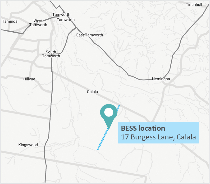 The proposed Calala Battery Energy Storage System (BESS) is located approximately 5.8km southeast of the Tamworth CBD within the Tamworth regional municipality. The BESS has an approval to store up to 300MW, which is enough power to supply electricity for up to 20,000 homes for two hours.